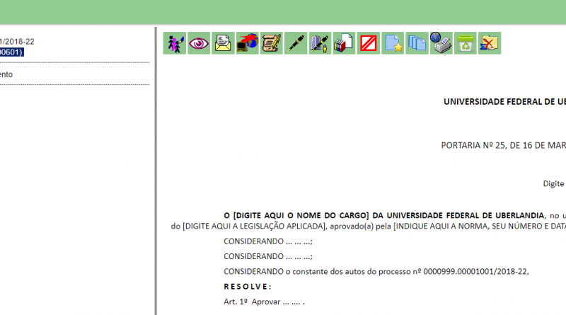 A Portaria REITO nº 2 de 07 de agosto de 2017 institui o SEI como sistema de gestão de processos e documentos eletrônicos no âmbito da Universidade Federal de Uberlândia a partir do dia 08 de agosto de 2017.