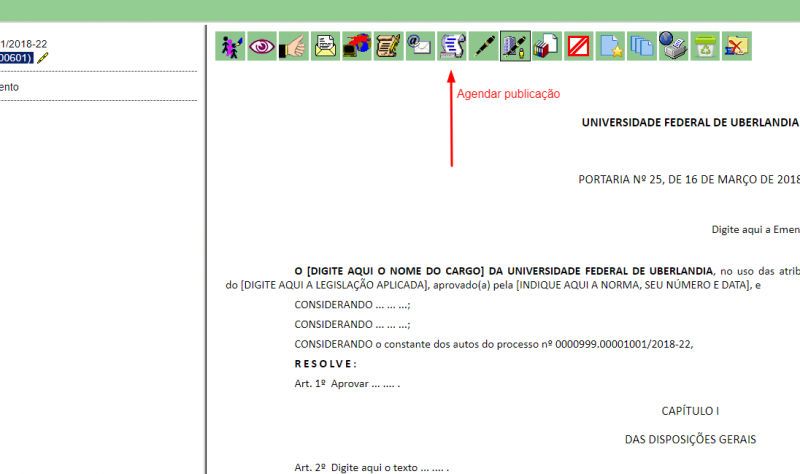A Portaria REITO nº 2 de 07 de agosto de 2017 institui o SEI como sistema de gestão de processos e documentos eletrônicos no âmbito da Universidade Federal de Uberlândia a partir do dia 08 de agosto de 2017.